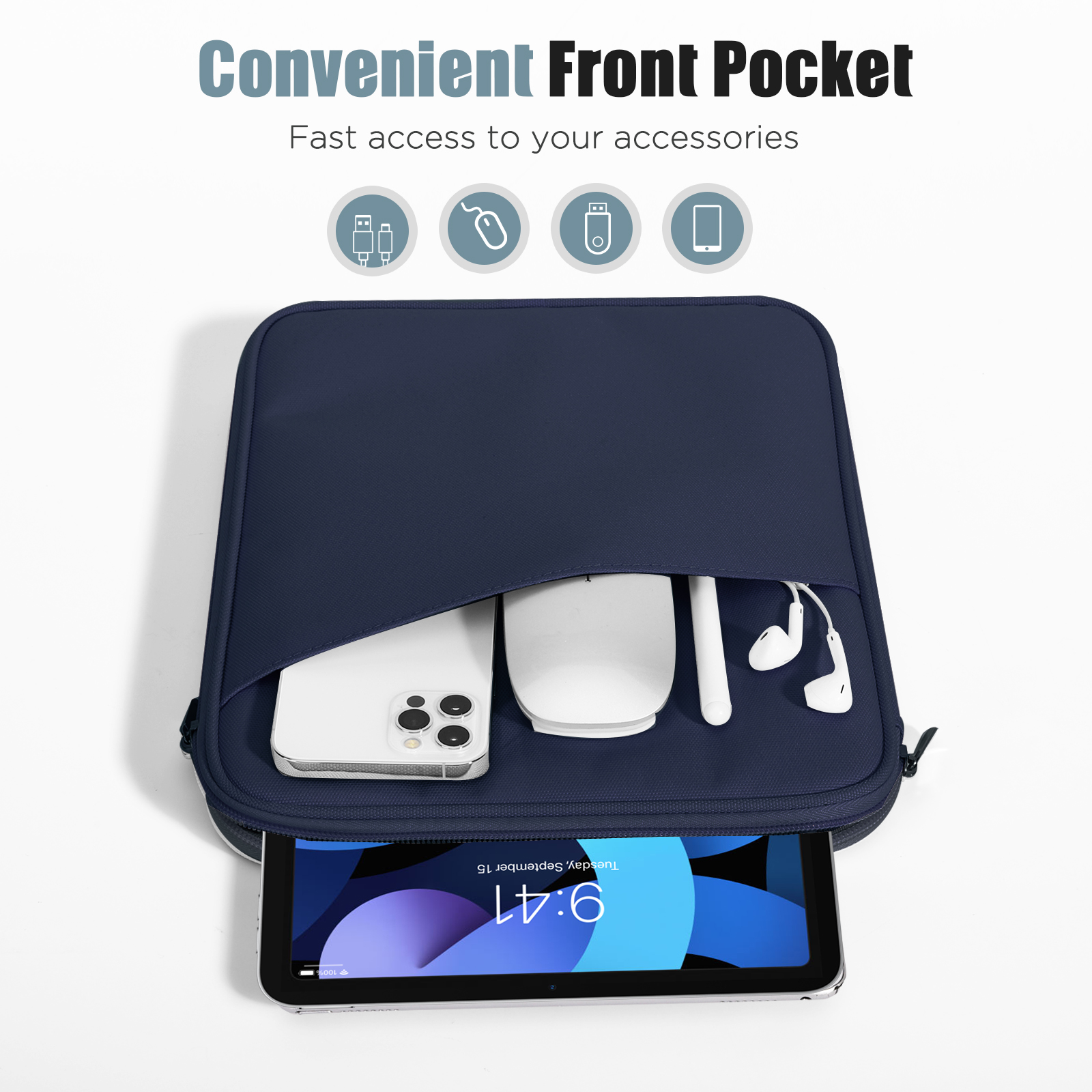 Die Reißverschlussöffnung erleichtert den Zugriff auf Ihre Gerät und Zubehör. Und kann Ihr Tablet sehr gut schützen.