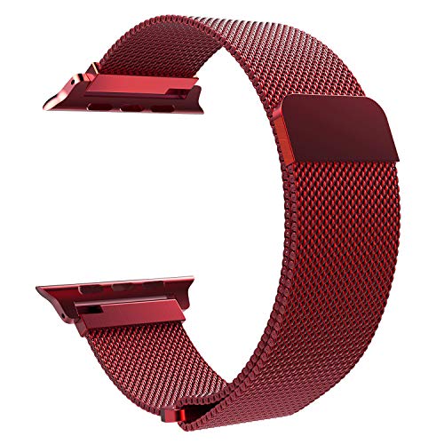 TiMOVO Band Replacement for Watch 38mm 40mm Series 4 / 3 / 2 / 1, Milanese Loop Stainless Steel Bracelet Strap with Unique Magnet Lock Compatible – Red