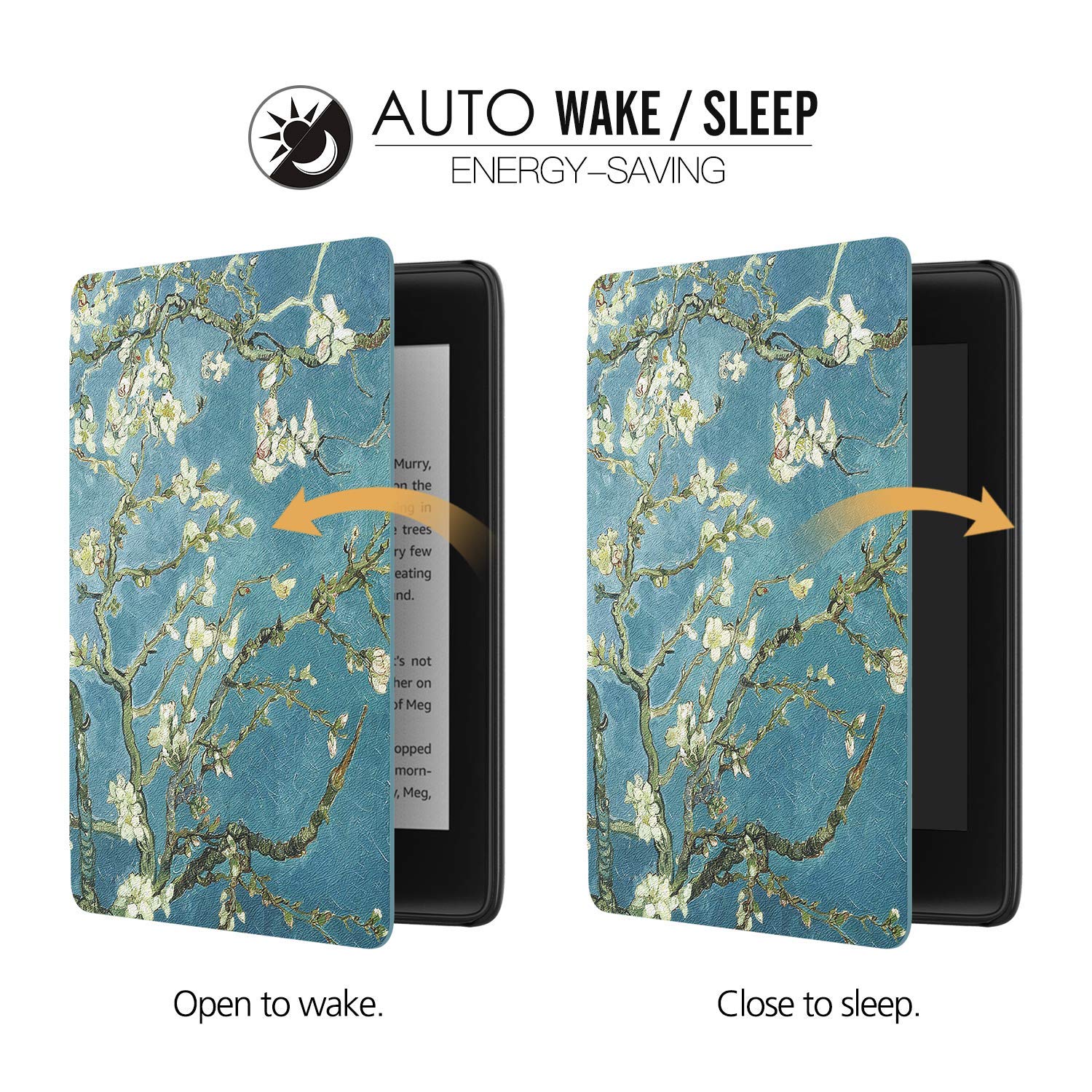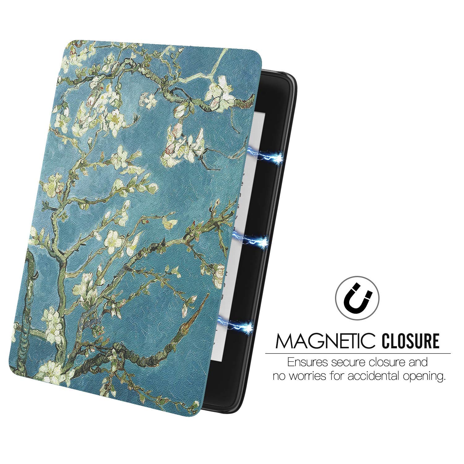 Automatically wakes or puts your E-reader to sleep when the lid is opened and closed. Magnetic closure for better protection.