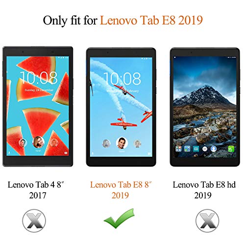 Compatibility: Specially designed for Lenovo Tab E8 8 Inch 2019 Tablet. Product Features: – Made with premium PU leather exterior and microfiber interior to protect your tablet. – Transform into typing or viewing angle without hassle. – Ultra Slim & Light Weight. – Precise cutouts and openings for button controls, ports and camera. Notes: Fits Lenovo Tab E8 8 Inch 2019 Tablet ONLY. NOT FIT any other tablets.
