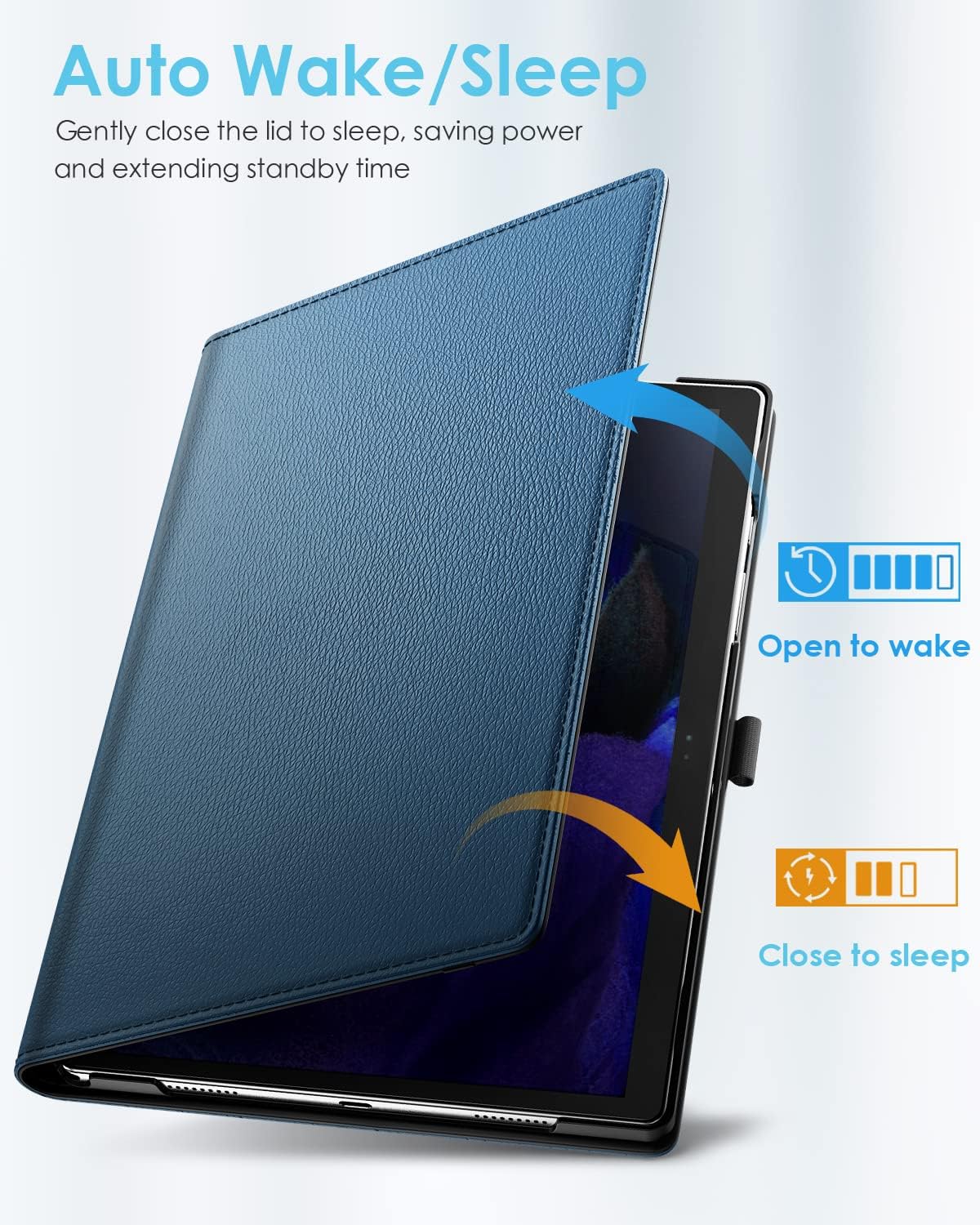 【Auto Wake/Sleep】Magnetic cover provides auto sleep/wake feature. Save much power for your tablet so that reduce charging frequency.