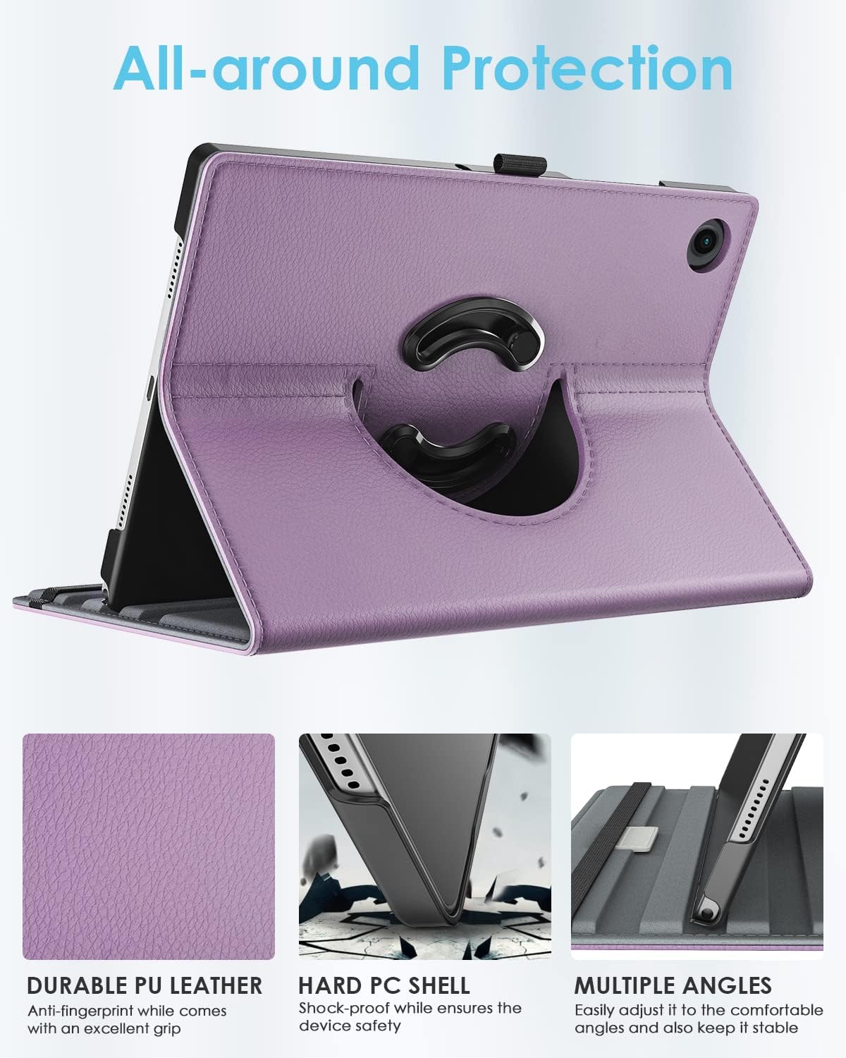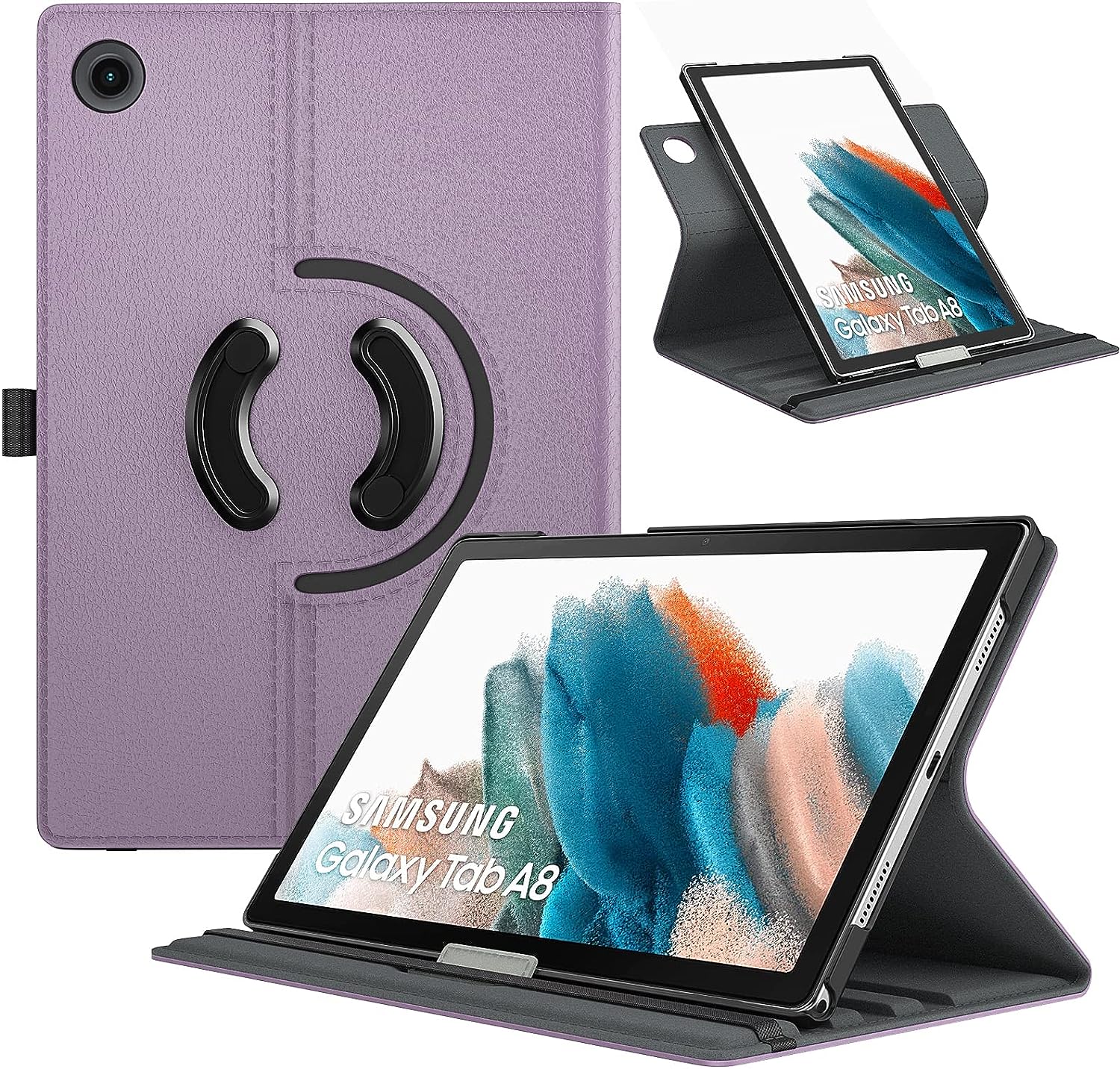TiMOVO Compatible with Samsung Galaxy Tab A8 10.5 Case 2022, Galaxy A8 Tablet Case SM-X200/SM-X205, 90 Degree Rotating Swivel Leather Cover, Multiple Viewing Angles Folding Stand Case, Taro Purple