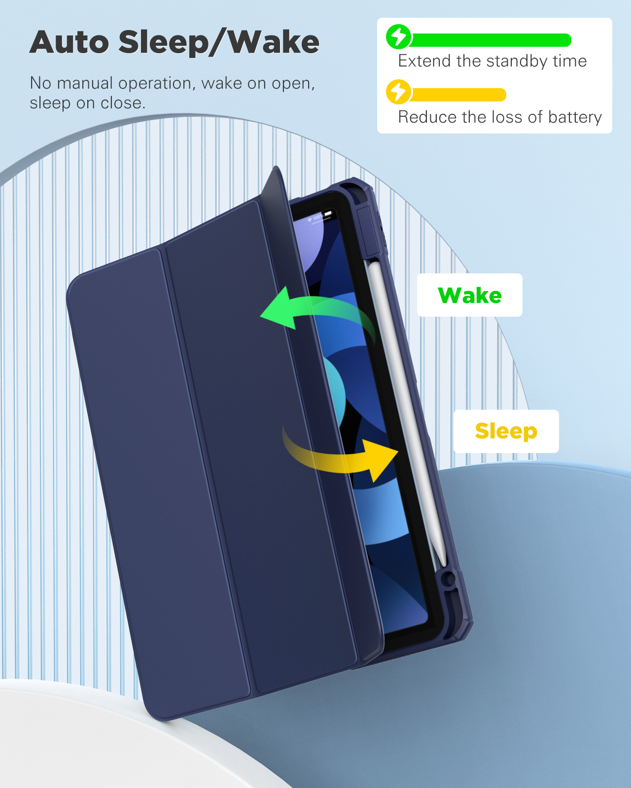 【AVVIO / ARRESTO AUTOMATICO】 – Sveglia facilmente o metti il tuo iPad Air in standby quando il coperchio è aperto o chiuso, comodo da usare. E sopporta Touch ID.