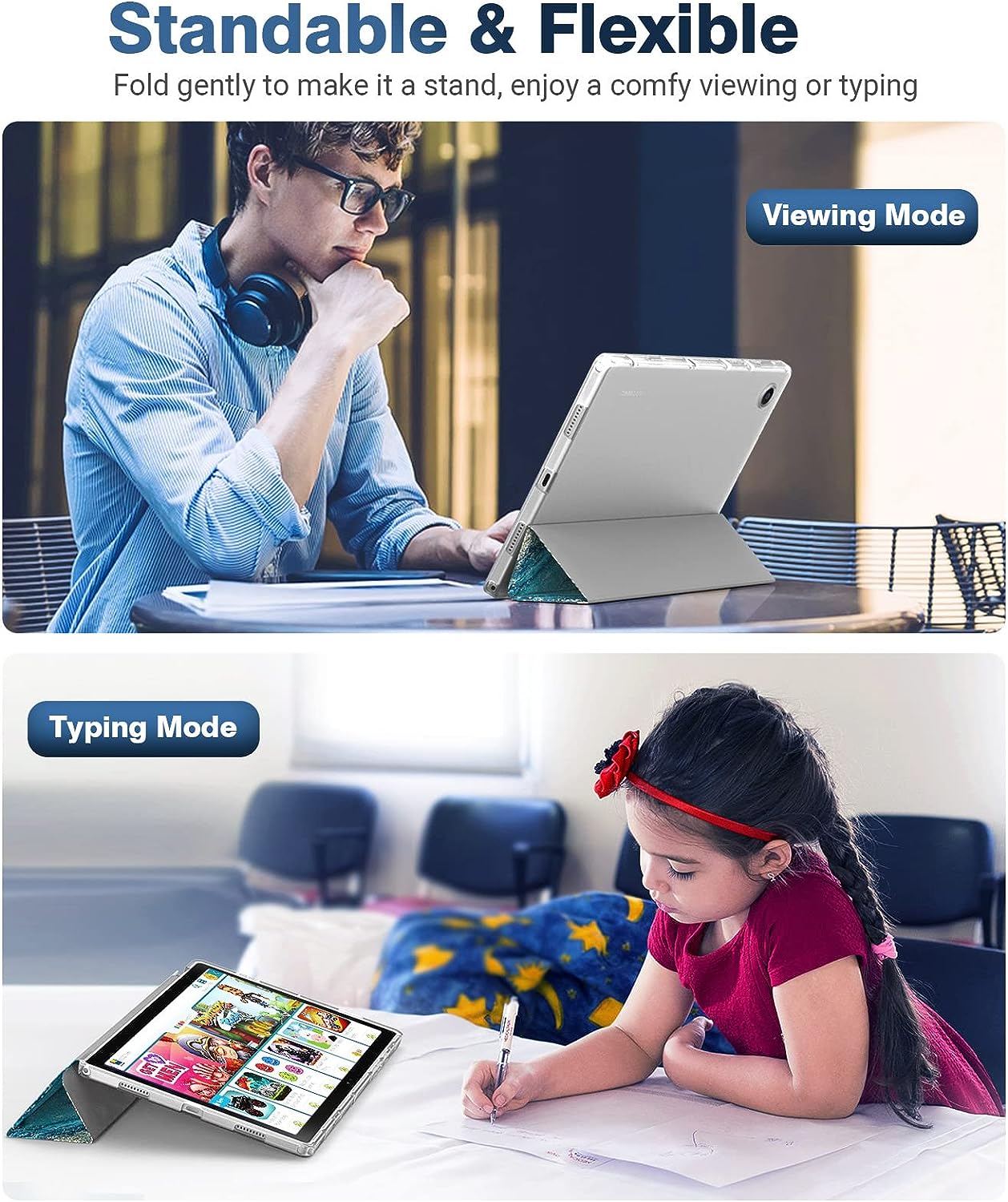 【 Convenient Stand Cover】Trifold stand case cover provides a convenient stand position for reading, watching videos/movies, gaming, learning, or typing with your Galaxy Tab A8 Tablet.