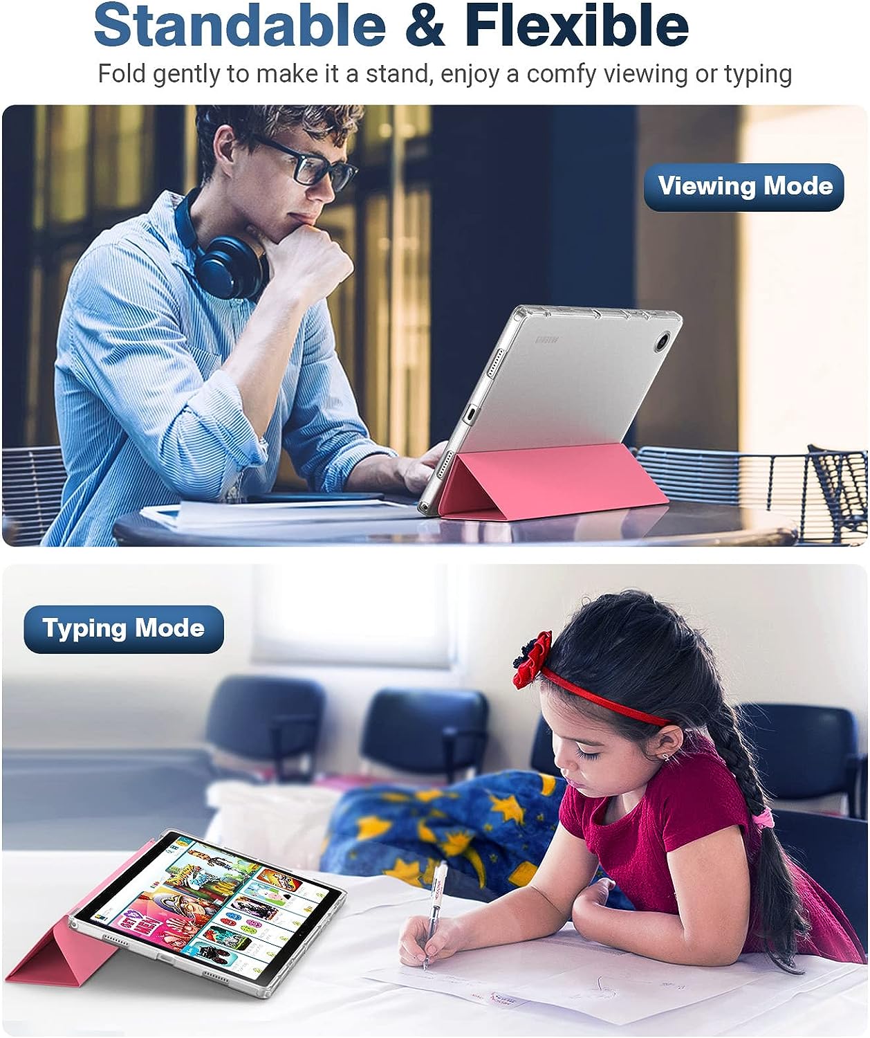 【 Convenient Stand Cover】Trifold stand case cover provides a convenient stand position for reading, watching videos/movies, gaming, learning, or typing with your Galaxy Tab A8 Tablet.