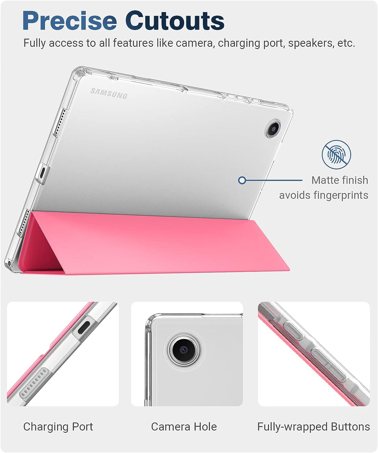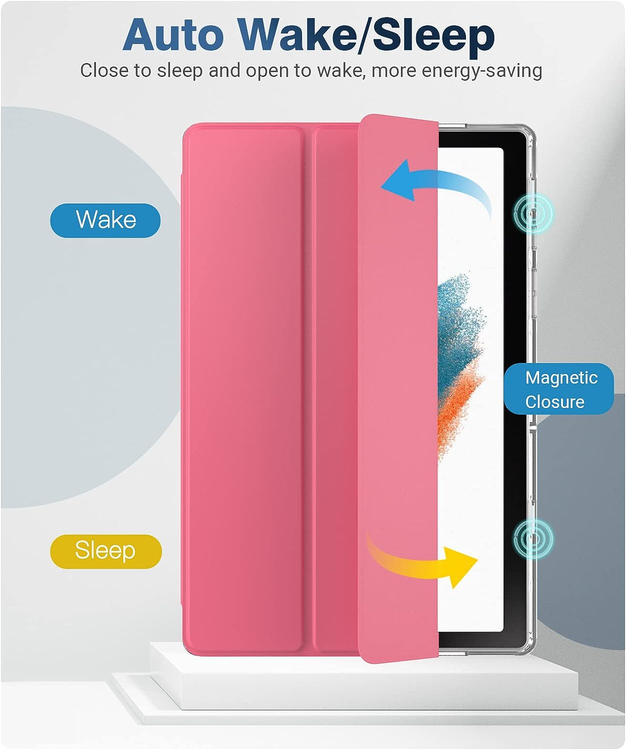 【Auto Wake/Sleep】Magnetic cover provides auto sleep/wake feature. Precise cutouts, full access to all ports and controls without removing the Galaxy Tab A8 10.5 Case, easy andconvenient to use.