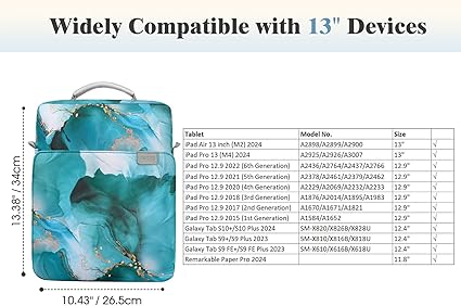 【Compatibility】- Designed for 13 inch tablets and fits smart keyboard, compatible with iPad Air 13″ (M3 2025/M2 2024), iPad Pro 13″, iPad Pro 12.9″, Galaxy Tab S9+/S9 Plus/S10+/S10 Plus/S9 FE+/S9 FE Plus 12.4″, Remarkable Paper Pro 11.8″.