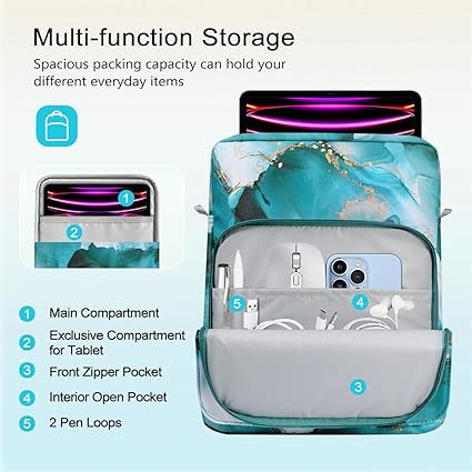 【Large Capacity】 – Comes with multiple compartments: 1 x main compartment to keep your tablet, 1 x front compartment, 1 x side compartment, 2 x open mesh pocket and 1 x zippered mesh pocket, offering enough space for your accessories like cables, mouse, earphone, notes, wallet, cards and more small items.