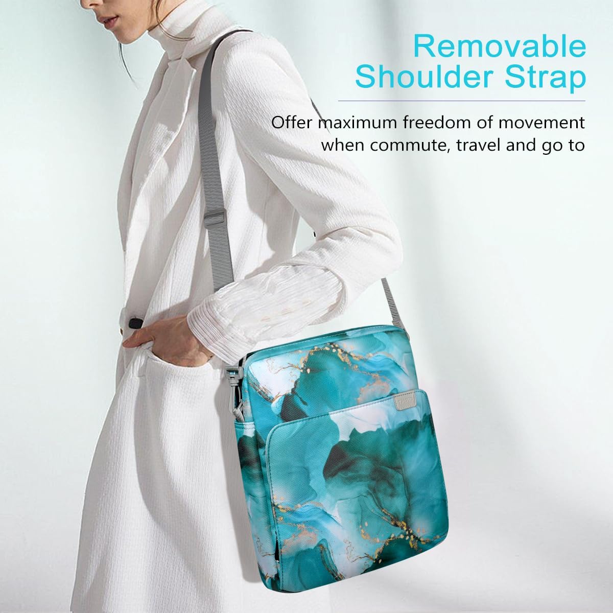 TiMOVO 13 Inch Tablet Sleeve Handbag with Shoulder Strap for iPad Air 13″ M3 2025, iPad Pro 13″/12.9″, Galaxy Tab S9+/S9 Plus/S10+/S10 Plus/S9 FE+/S9 FE Plus 12.4″, Cloud Peacock Blue