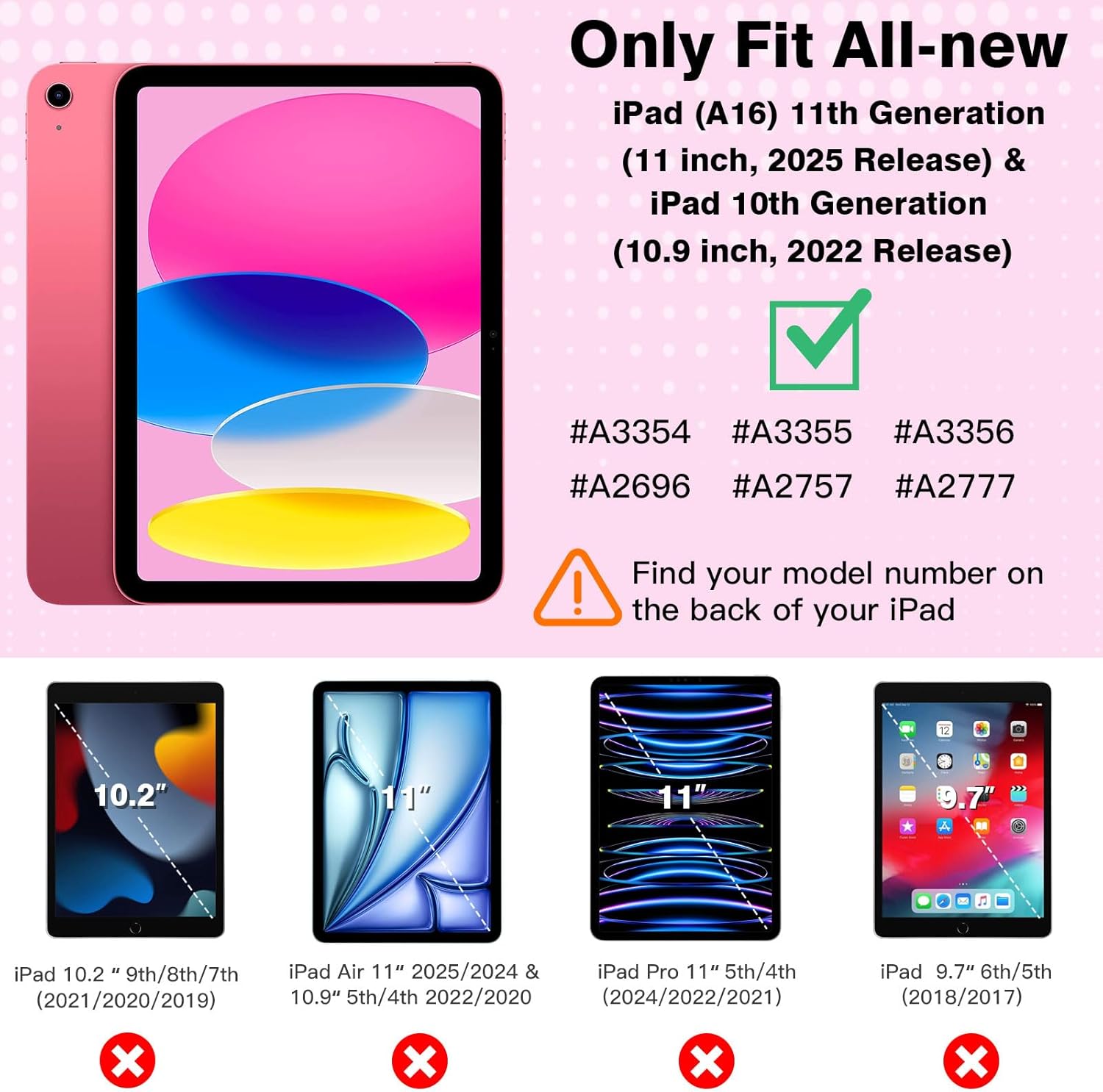 ONLY fit for new iPad A16 11th Generation 11 inch 2025 Release(Model Number: A3354 A3355 A3356)/iPad 10th Generation 2022 10.9 inch(Model Number: A2696 A2757 A2777 A3162). Not fit for other iPad models.