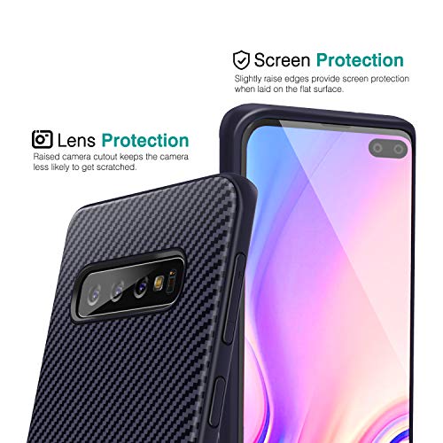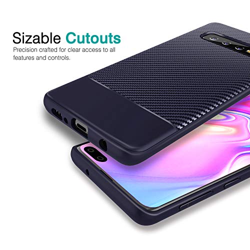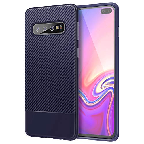 TiMOVO Compatible with Galaxy S10+ Case, Soft Anti-scratch TPU Bumper Cover + Carbon Fiber Cover Fit with Samsung Galaxy S10 Plus 6.4 inch 2019 – Blue