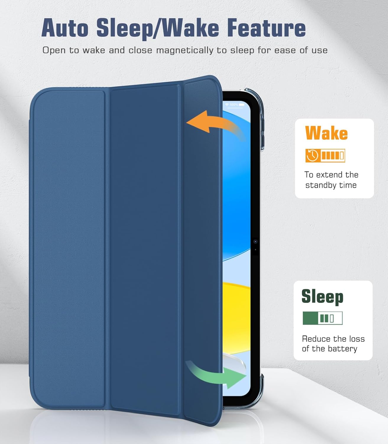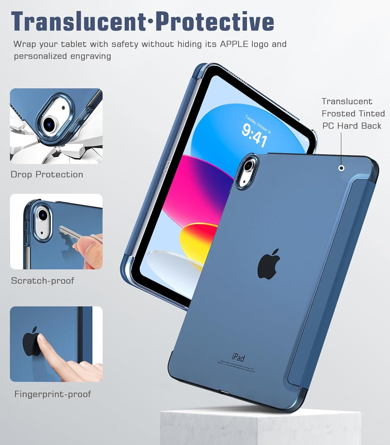 TiMOVO Cover Custodia Compatibile con iPad (A16) 11 Generazione 11 Pollici 2025/iPad 10 Generazione 10,9″ 2022, Retro in PC Rigido Semi-Trasparente, Auto Sveglia/Sonno, Grigio Blu