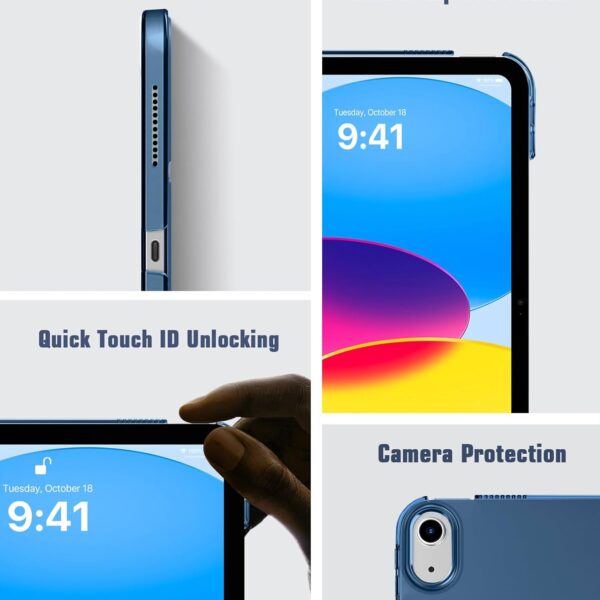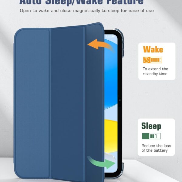 Auto Sveglia / Sonno: Cover iPad A16 con chiusura magnetica e funzione di auto sveglia / sonno. Non solo può risparmiare energia, ma anche prolungare il tempo di utilizzo del dispositivo. Facile accesso a tutte le funzioni, come fotocamera, altoparlante, la porta Touch ID e pulsanti, controlli e porte senza togliere la cover