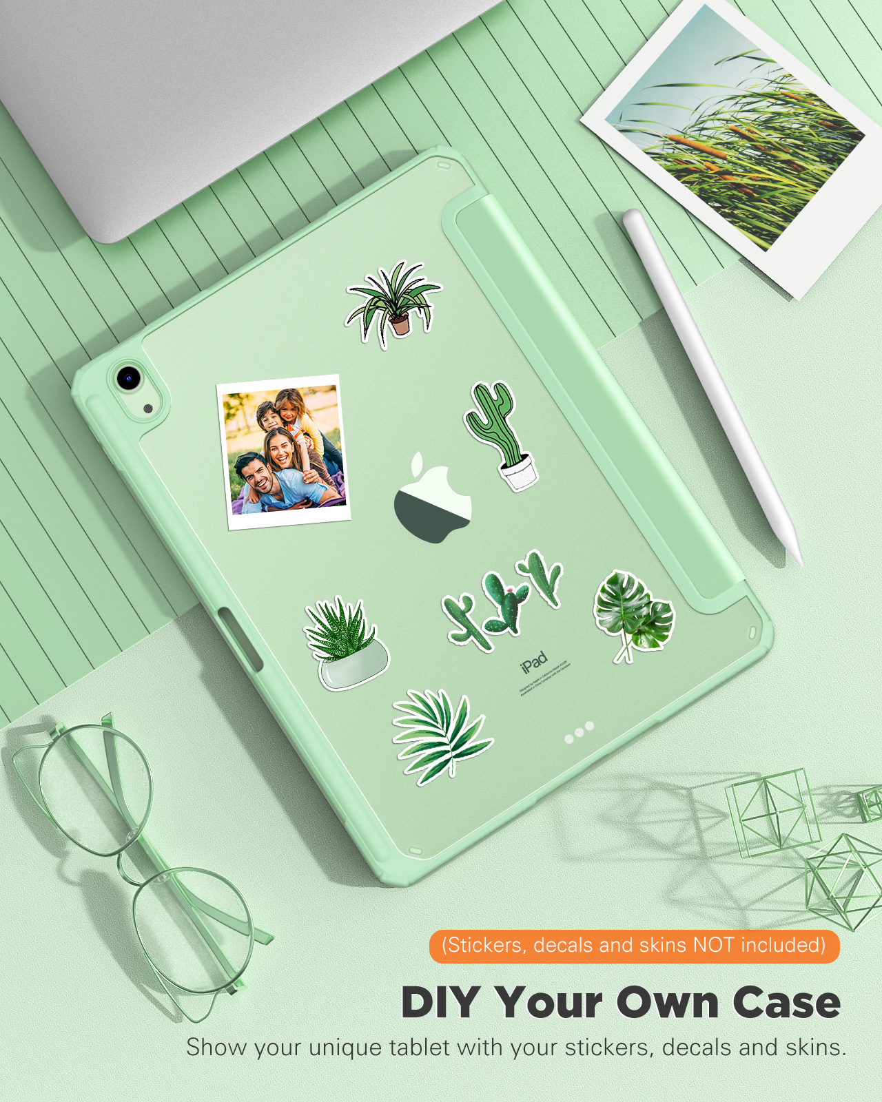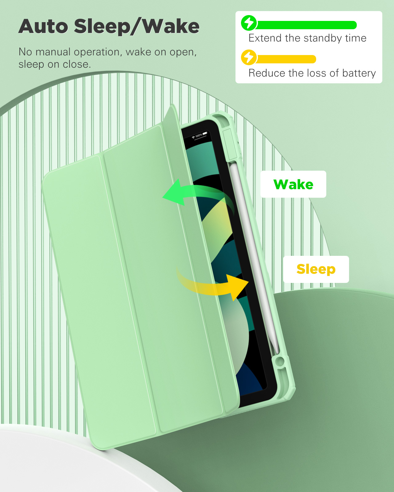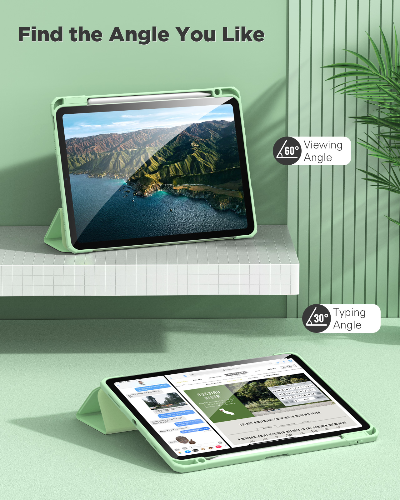 -Magneti incorporati, piegati in un supporto. Piegare il coperchio anteriore per una comoda posizione di visione a mani libere. È perfetto per i tuoi film e programmi preferiti. Quando hai bisogno di fare un po’ di lavoro, puoi regolare il supporto per una comoda posizione di battitura.