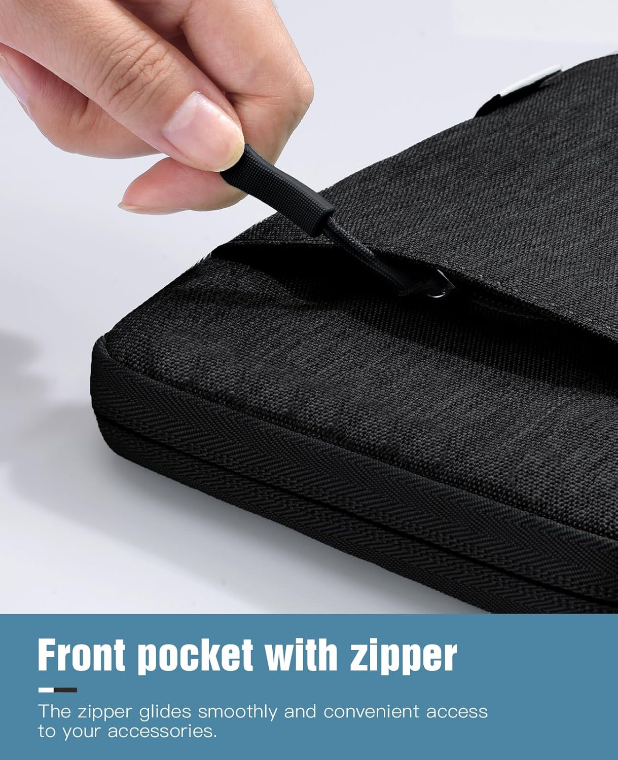 【Exterior Pocket】 The sleeve with a small pocket provides enough space for you to keep some small items such as cables, USB flash drives, mouse, earphone, pens, notes, cards, keys, etc.
