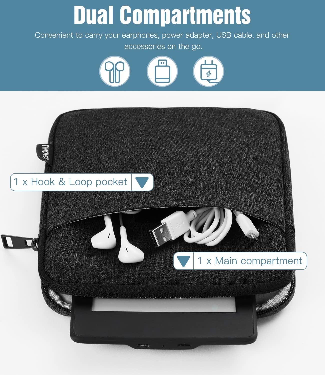 TiMOVO Housse 6-7 Pouces pour Liseuse, Compatible avec Colorsoft Signature Edition, Étui de Protection et Sac de Transport pour Appareils Kobo, Noir